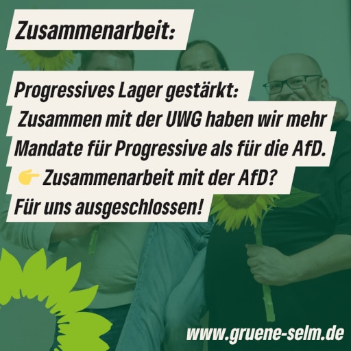 Wir arbeiten mit allen zusammen, die im Rahmen des Grundgesetzes handeln, die Vielfalt leben, Queere und Trans Menschen respektieren und die bereit sind, sich für Selm einzusetzen – für alle Menschen, egal ob hier geboren, zugezogen oder geflüchtet. Mit antidemokratischen Kräften werden wir nicht zusammen arbeiten.